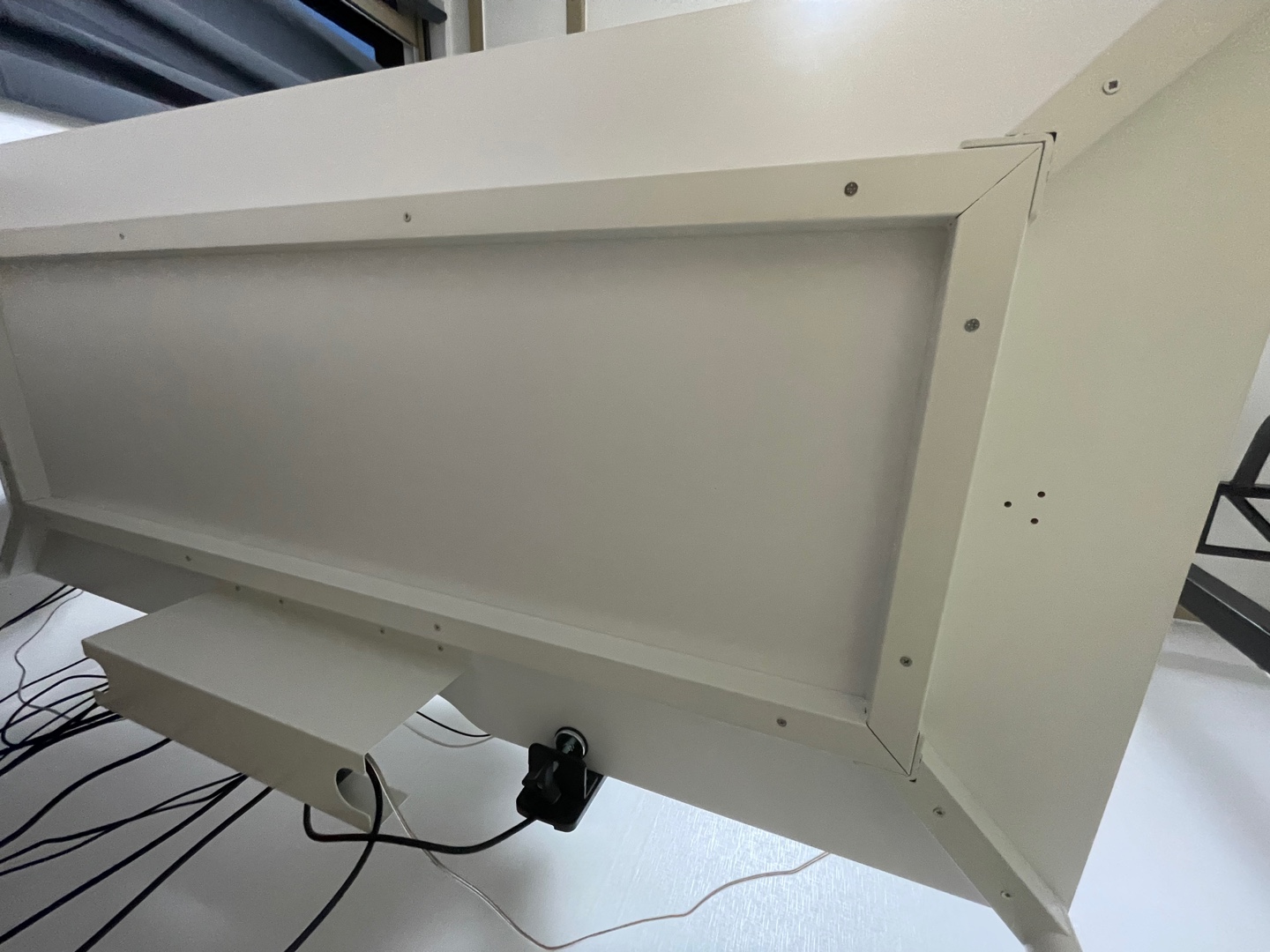 책상 상판의 도장은 무광에 가까우며, 흠집이나 뭔가 묻어 더러워지는 것에 강합니다. 사실 흰 책상을 구매하면서 많이 걱정했던 점이, '쉽게 더러워지지 않을까?' 였는데, 책상을 받아보고 그 걱정은 말끔히 사라졌습니다.