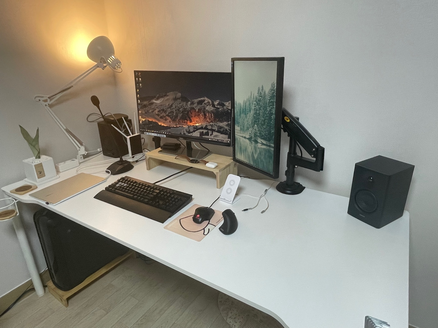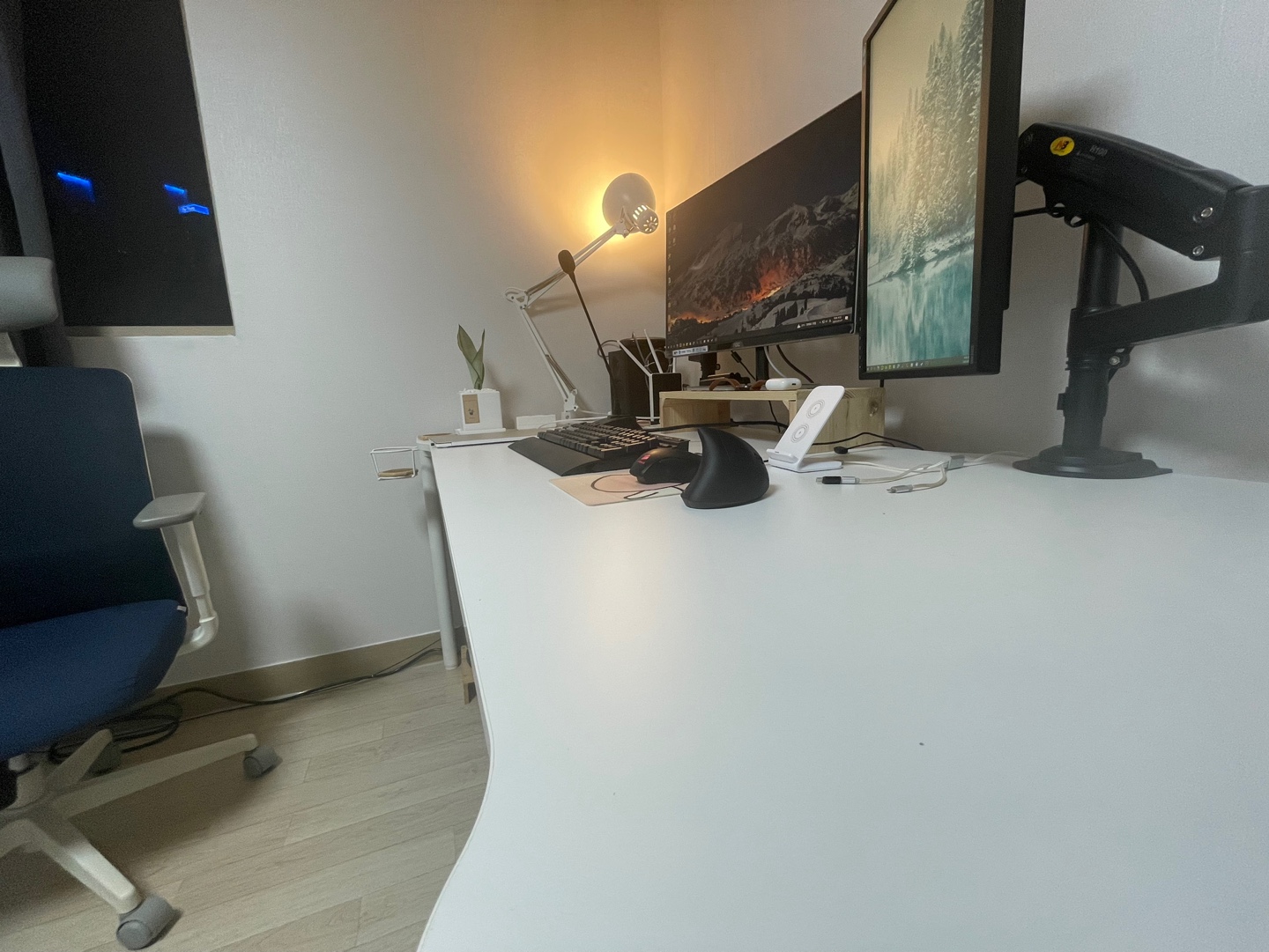 재택근무도 있고, 평소 자는 시간을 제외하면 거의 책상에서 보내는 지라, 책상은 제게 정말 중요합니다. 다가구 페르마타 네오는 저의 업무 수행과 발전을 이루는데 훌륭한 책상이 될 것 같네요. 대만족 중입니다. 기존에 오피스텔에서 사용하던 책상에 비하면 정말 5단계는 업그레이드된 기분입니다. 아직은 데스크 셋업이 충분히 되지 않았지만, 깔끔한 데스크 셋업을 만들어 나갈 계획입니다.