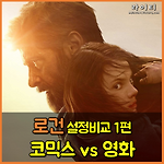 반갑습니다. 라이티입니다! 이번 포스팅은 영화 로건에 관한 포스팅인데요. 요즘 극장가엔 휴잭맨 울버린의 마지막 시리즈, 로건이 그야말로 화제입니다. 로건 이전에도 훌륭한 히어로 영화들이 많았지만, 영화 로건은 히어로 영화의 새 지평을 열었다는 평을 받고 있습니다. 저도 영화 로건을 재밌게 감상했습니다. 휴잭맨의 울버린, 로건과의 작별은 아쉽고, 슬프기까지 했죠. 그래서 준비한 포스팅! 로건의 코믹스 버전과 영화의 비교! 영화 로건의 원작 기본 스토리인 코믹스(만화책) 버전, '울버린 : 올드맨 로건(Wolverine : Old Man Logan)'과 영화 로건을 비교하는 포스팅. 마블의 코믹스와 시네마틱 유니버스는 공통점보단 차이점이 많은데요. 영화와 코믹스 로건은 어떤 차이점이 있을지, 함께 살펴봅시다..